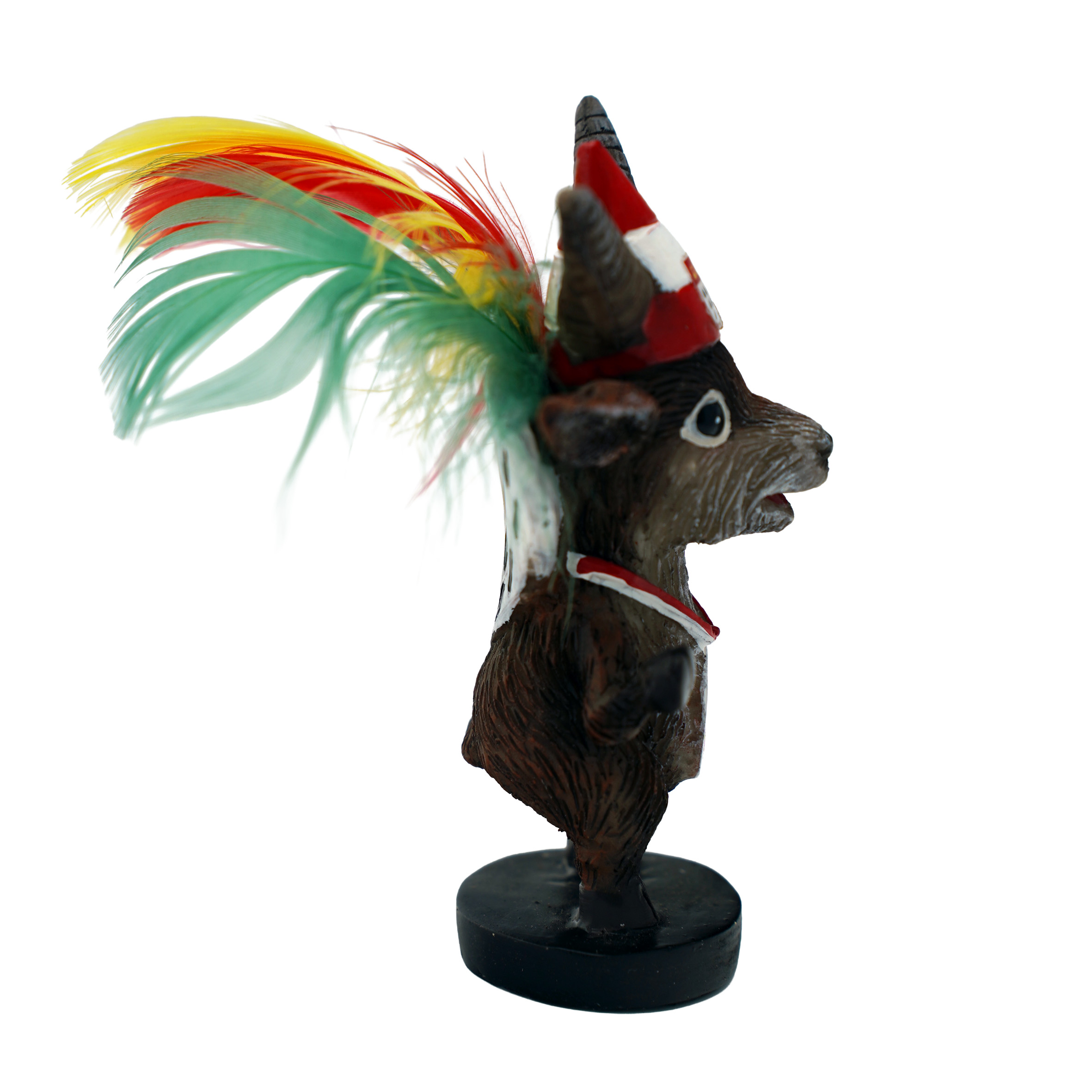 Prinz mit Narrenkappe und farbenfrohem Federschmuck.