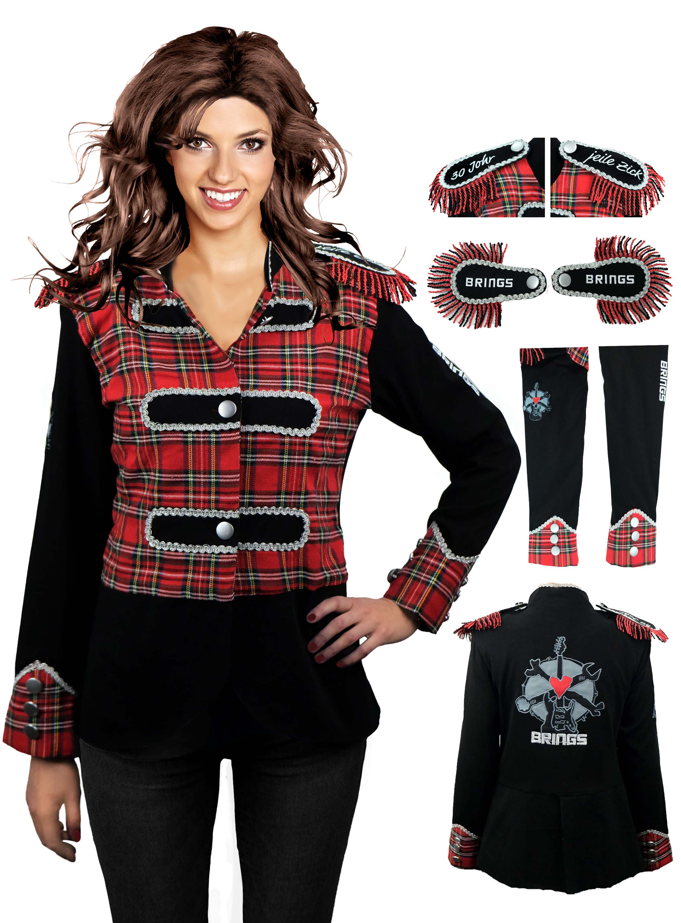 Egal ob auf Konzerten, Karnevalssitzungen oder im Sraßenkarneval, hiermit sind Sie immer perfekt gekleidet. Auch im nächsten und den folgenden Jahren wird der Frack ein absolutes Lieblingsstück bleiben. Der Clou bei dem Frack sind die einfach abnehmbaren Schulterklappen, die in zwei Varianten mitgeliefert werden: - die Jubiläumsklappen "30 Johr- jeile Zick" und die neutralen Schulterklappen, auf denen der Schriftzug "BRINGS" aufgestickt ist. Angebracht werden die Schulterklappen ganz einfach mit den daran befestigten Sicherheitsnadeln.