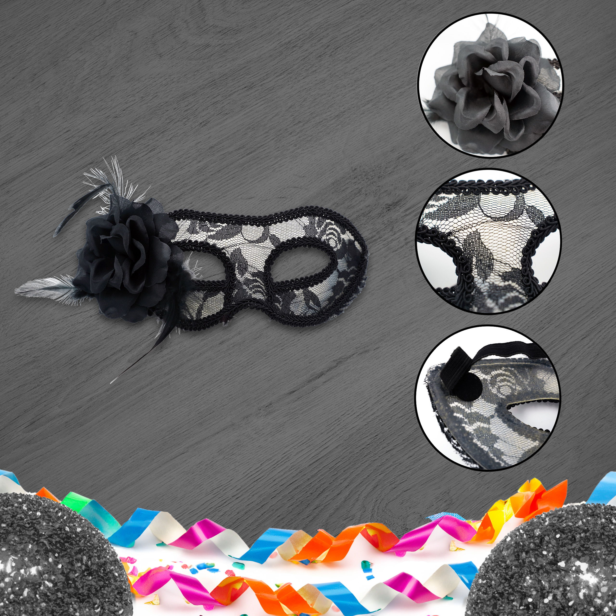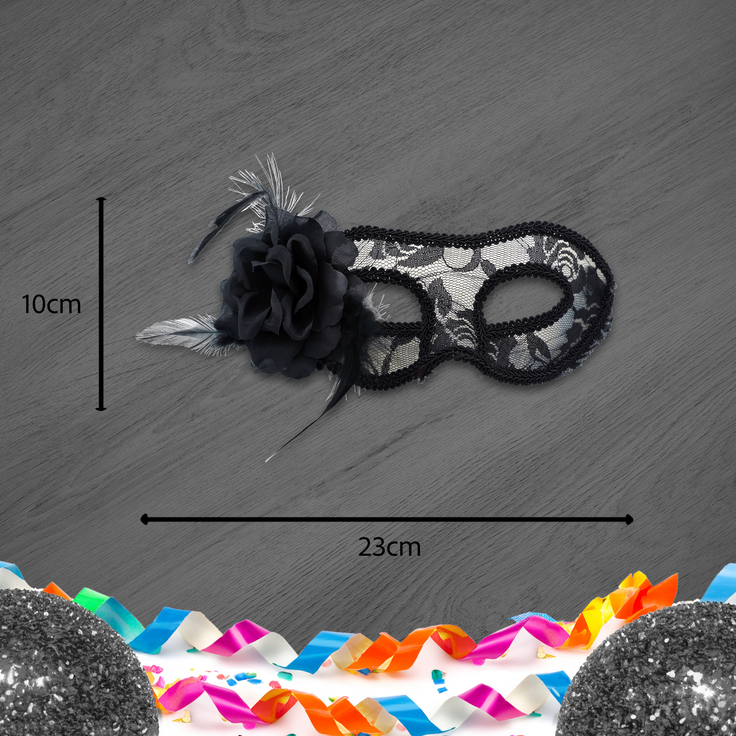 - DESIGN: Elegante venezianische Spitzenmaske in Schwarz mit dekorativer Rose und feinen Spitzendetails für einen glamourösen Auftritt